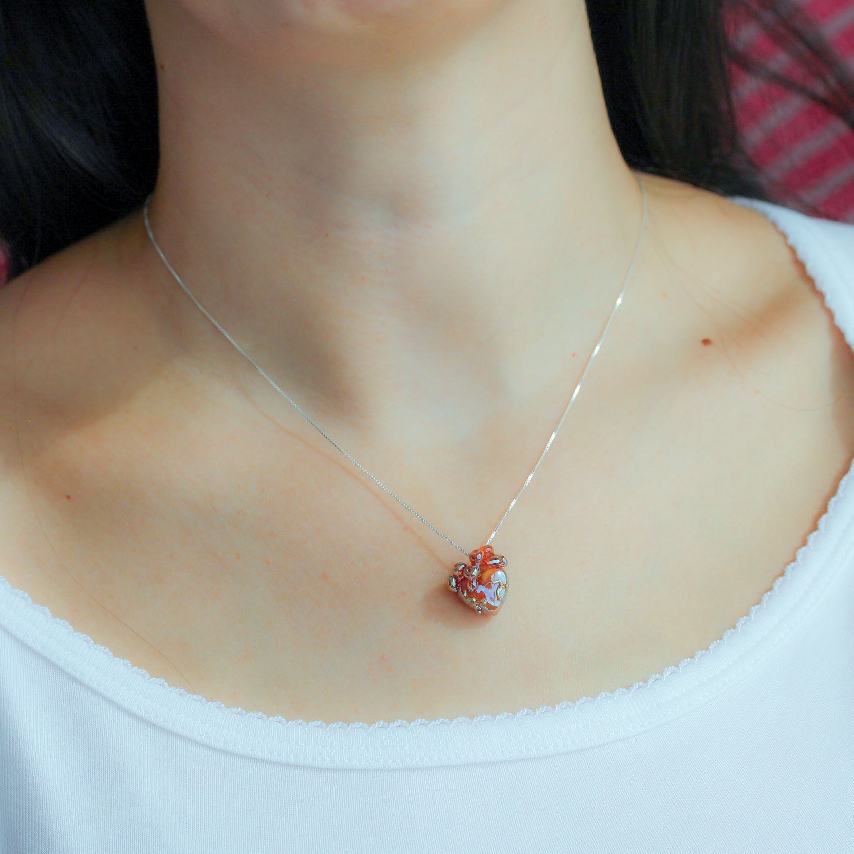 El colgante está diseñado y hecho a mano en mi taller. La cadena está disponible en plata de primera ley y en plata chapada en oro y en tres medidas: 40cm, 45cm y 50 cm.