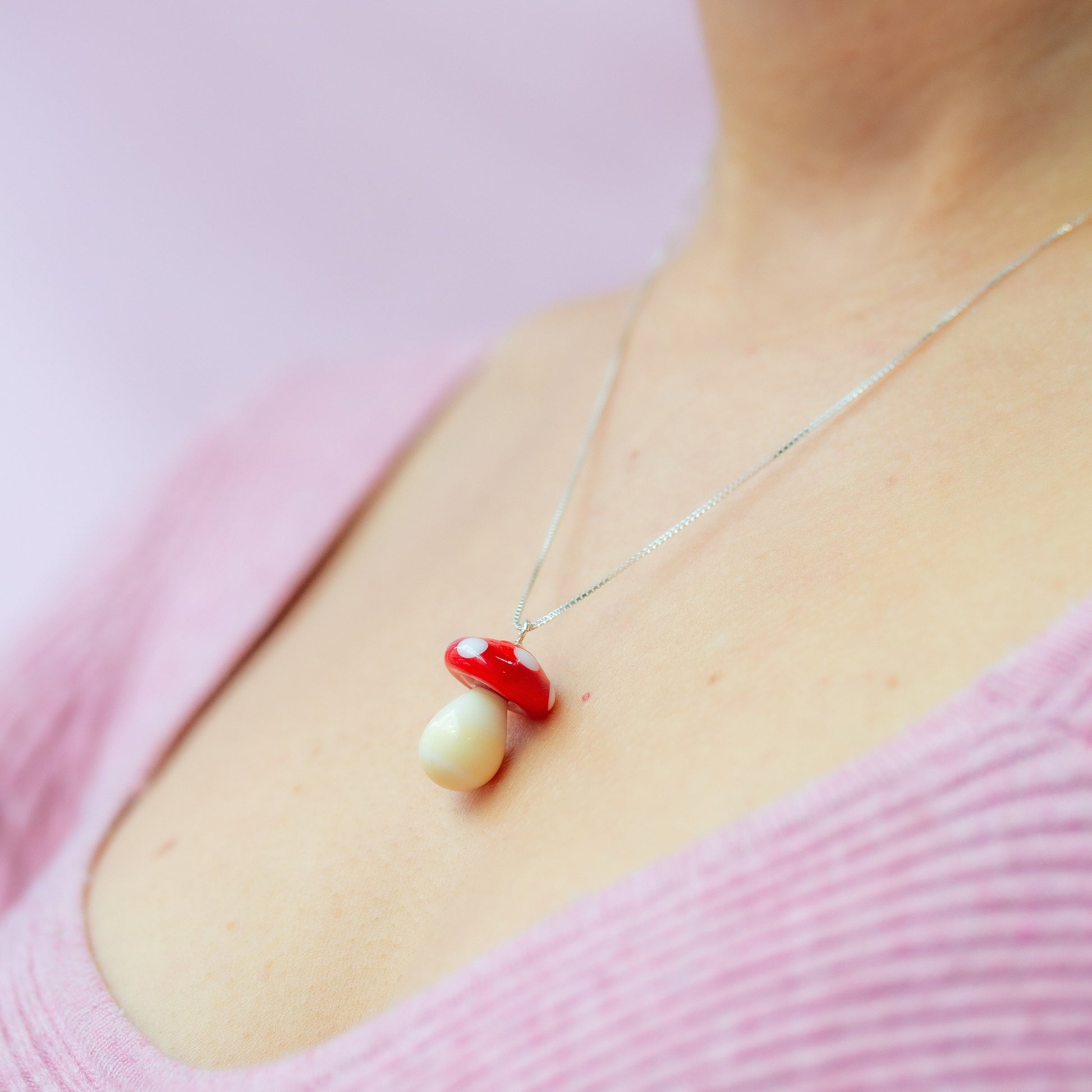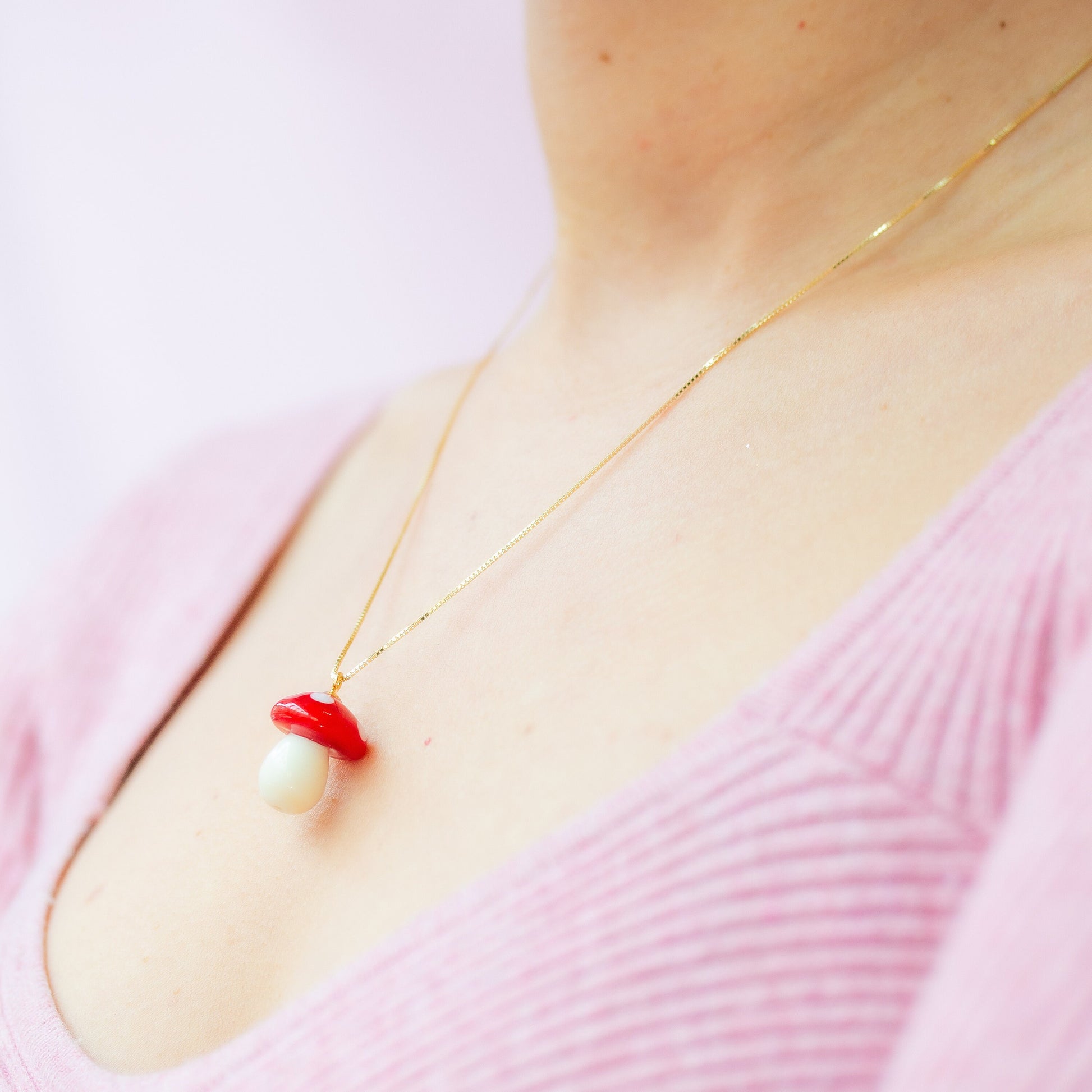 Les presentamos el collar de un Hongo mágico diseñado y hecho a mano en mi estudio de vidrio.