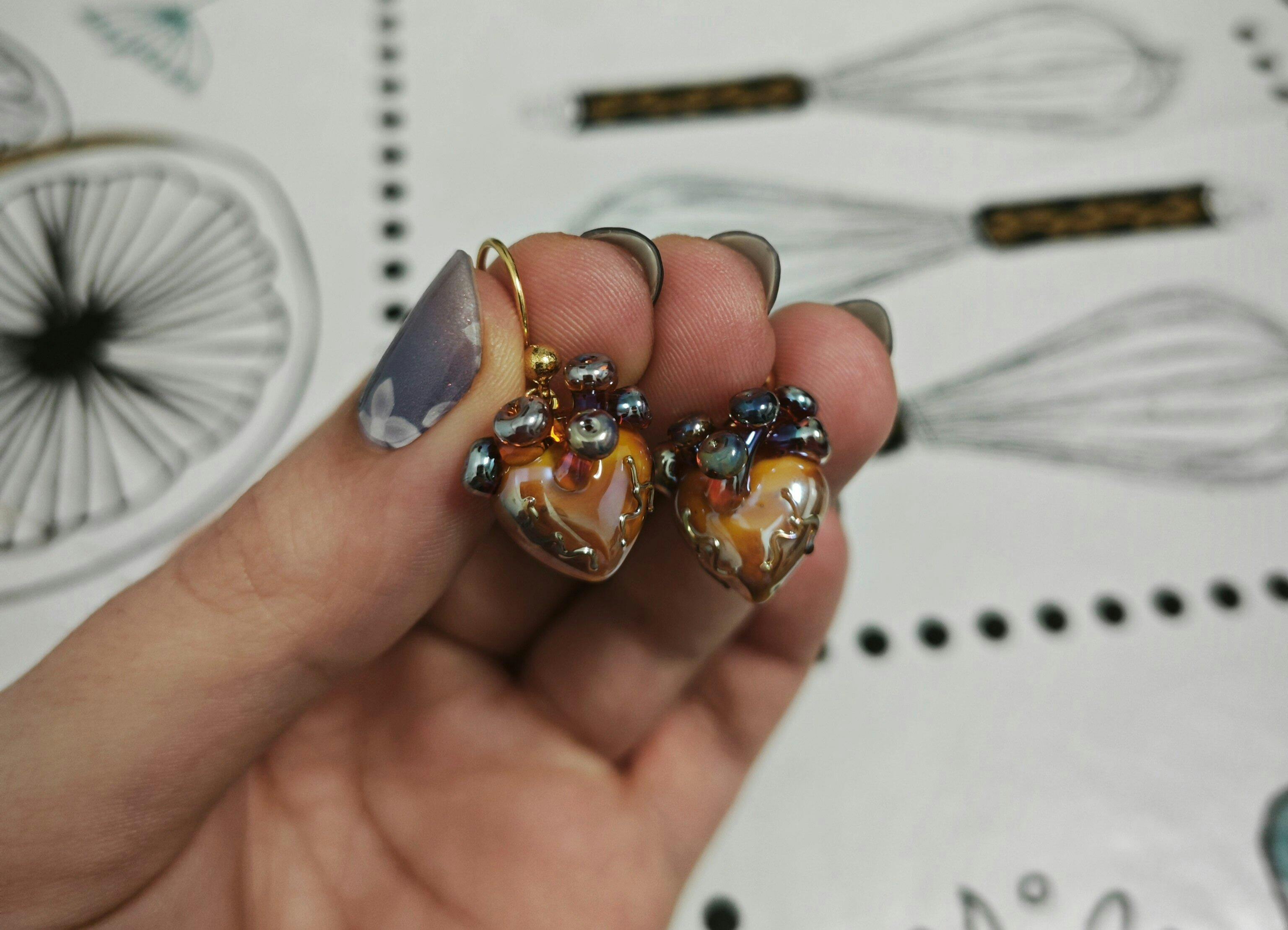 - Cuentas de cristal de murano: Hechas a mano de forma individual, moldeadas con soplete en mi taller.