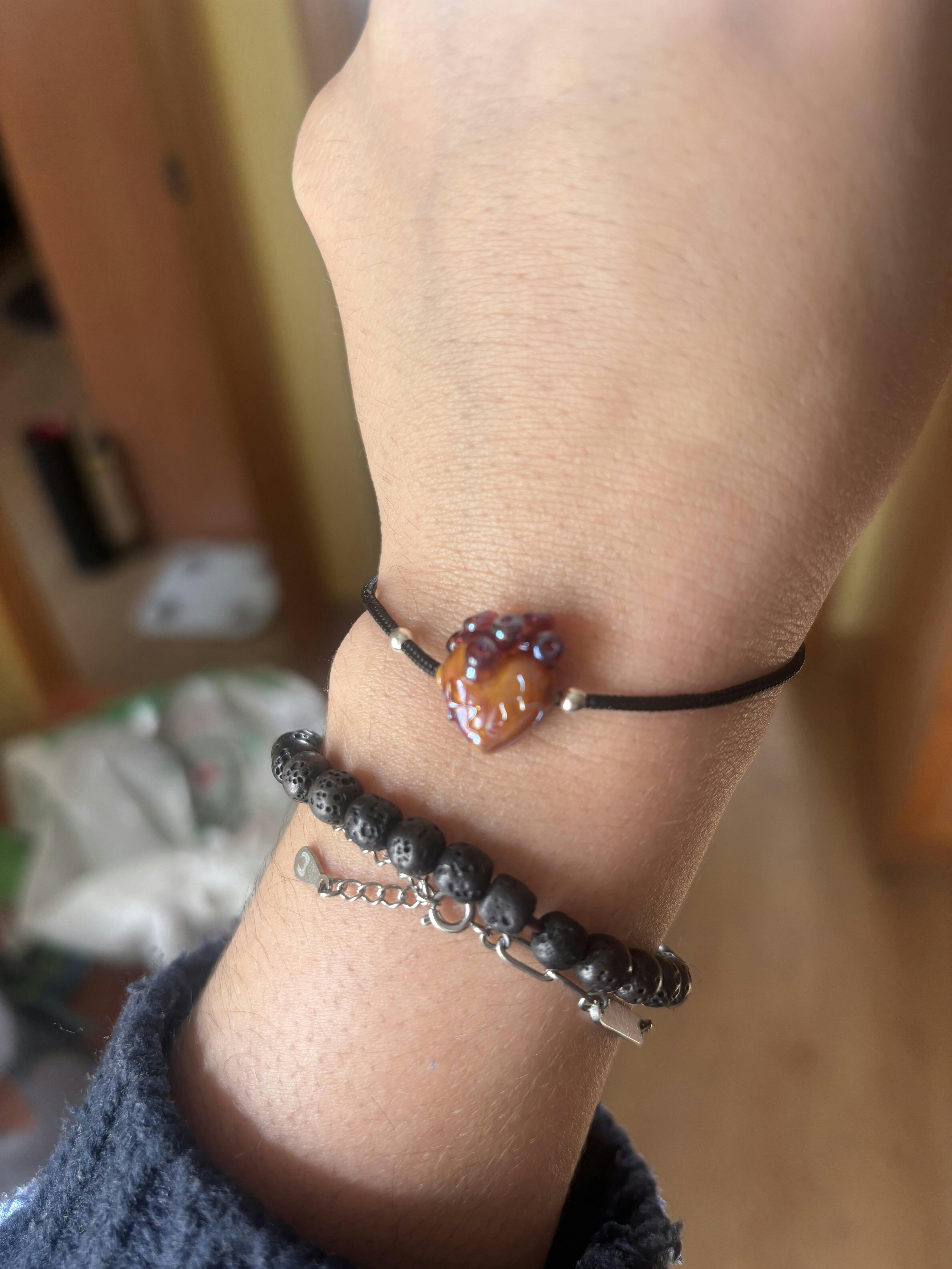 - Cuentas de cristal de murano: Hechas a mano de forma individual, moldeadas con soplete en mi taller.