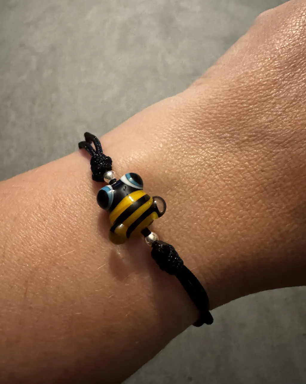 - Pulseras: Cordón de nylon de con cuentas de plata.